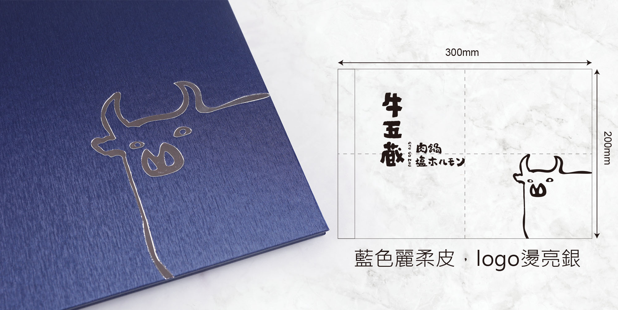 ▼麗柔皮外釘裝,外觀大方簡潔,菜單內頁使用205磅卡紙上膜,細緻度高。