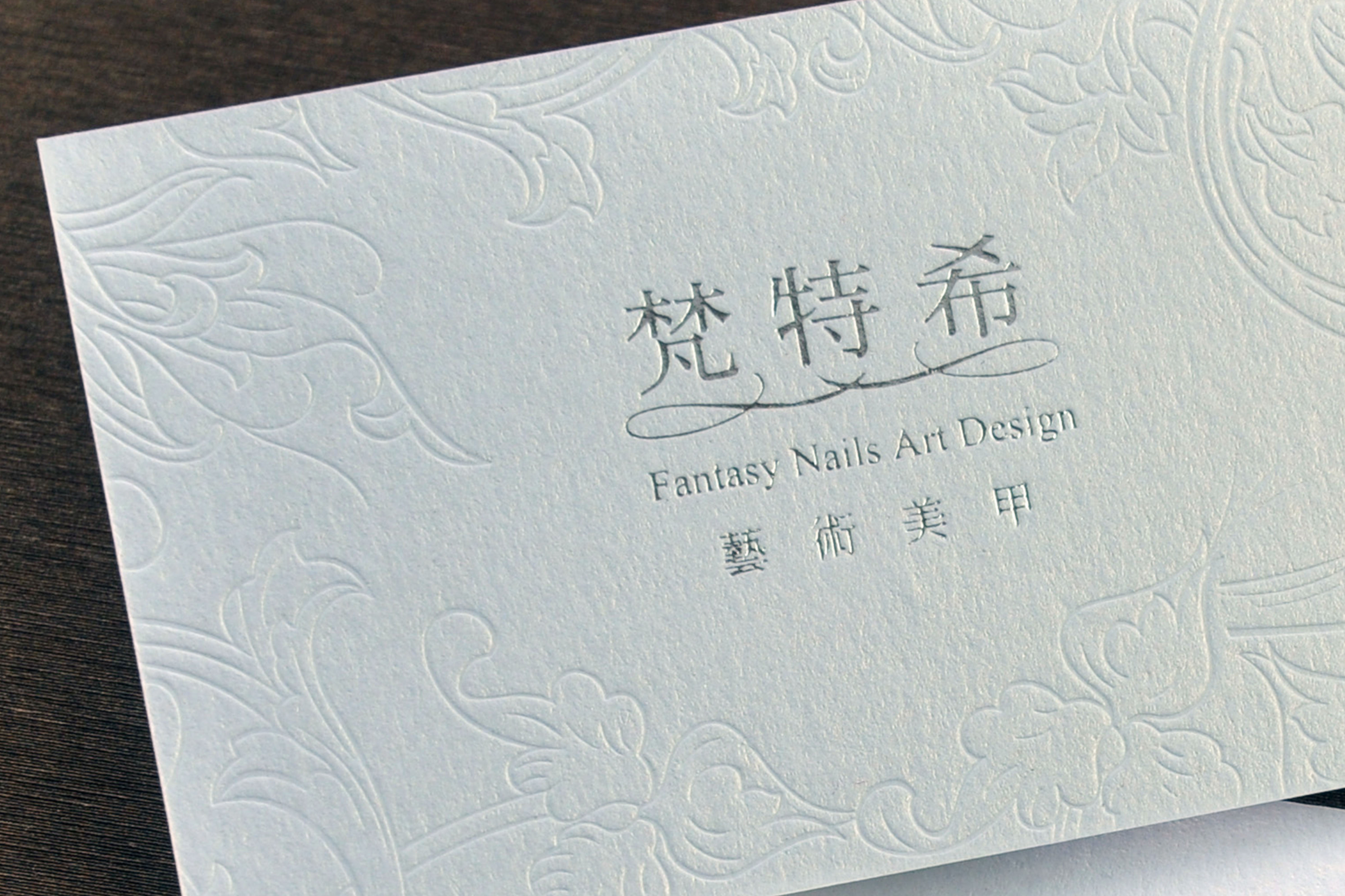 頂級手工名片:美術紙(無法彩色印刷),燙銀+壓紋