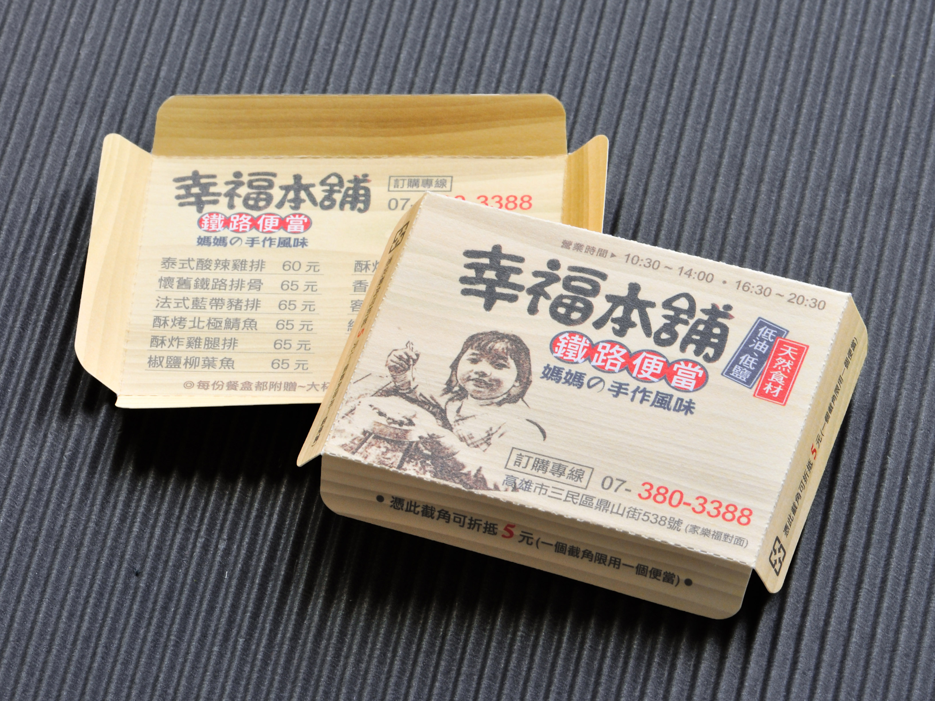 合版印刷:300um象牙紙,軋型加工(便當外型+四邊撕線)