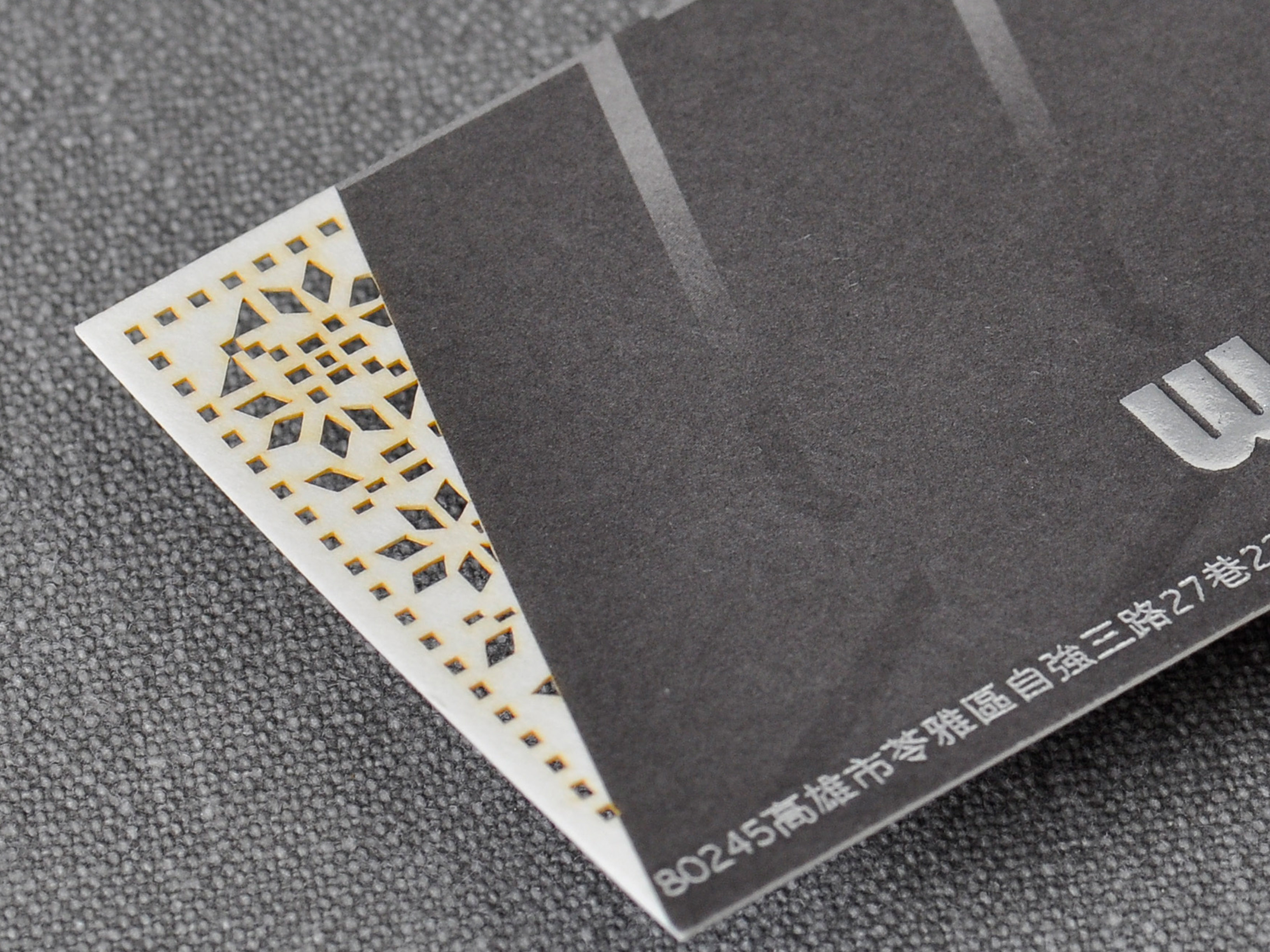 同時雷射精雕能完成更加複雜精緻的紋路,簍空效果也讓名片增添透視的趣味。